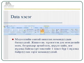 Microsoft excel програмтай ажиллах гарын авлага 2017 PPTX