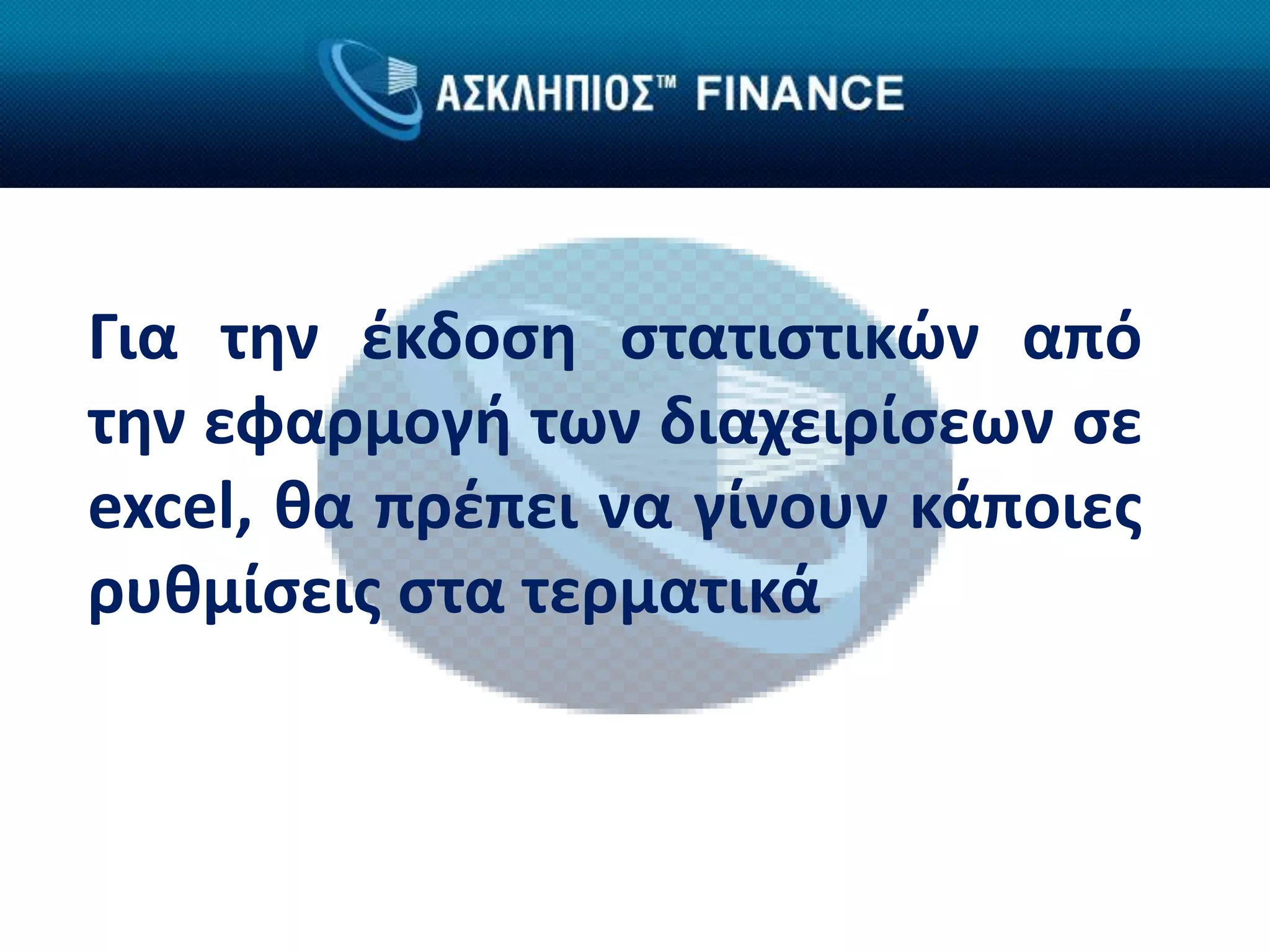 στατιστικών από την εφαρμογή των διαχειρίσεων σε excel, θα πρέπει να γίνουν κάποιες ρυθμίσεις στα τερματικά