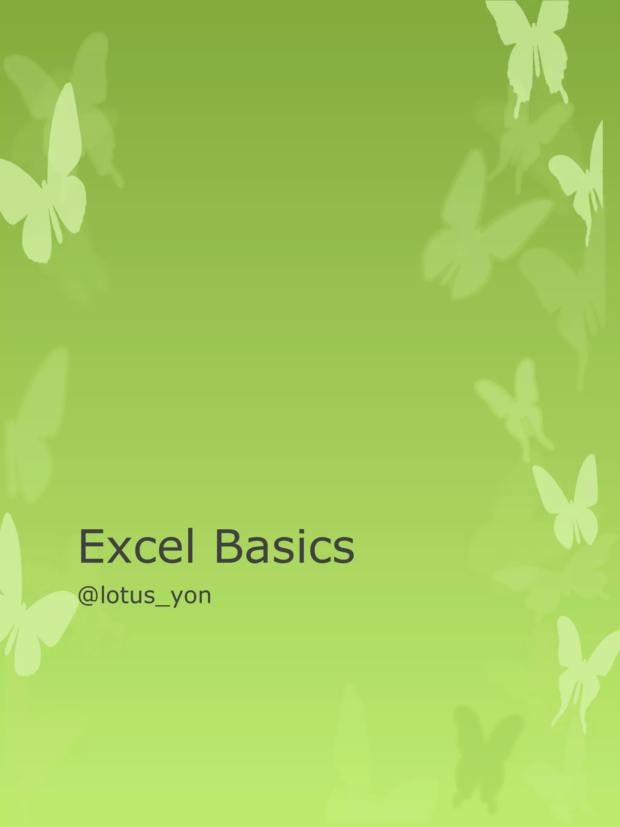 The document provides an agenda for teaching basic Excel skills. It will cover the essential Home tab functions for basic tasks like formatting, sorting, and filtering. It will also cover more advanced skills like inserting objects, charts and using keyboard shortcuts to work more efficiently. The goal is for learners to feel comfortable creating and formatting a basic spreadsheet and practicing useful techniques.