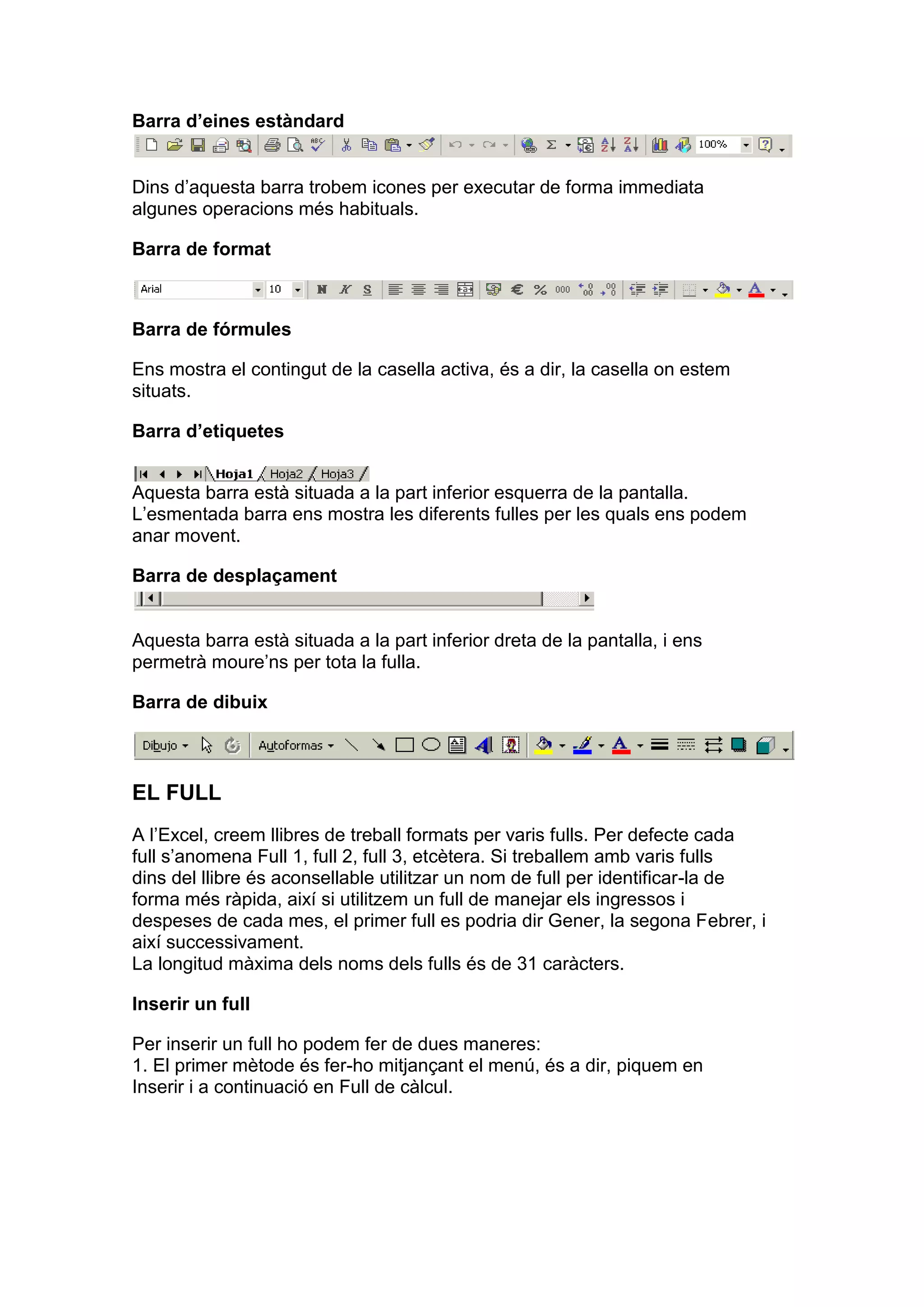 A l’Excel, creem llibres de treball formats per varis fulls. Per defecte cada