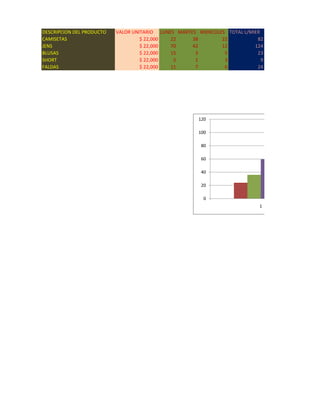DESCRIPCION DEL PRODUCTO VALOR UNITARIO LUNES MARTES MIERCOLES TOTAL L/MIER