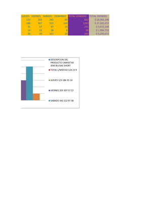 JUEVES VIERNES SABADODOMINGO TOTAL VENDIDO TOTAL DIENERO
