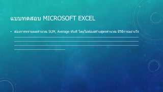 พื้นฐานความรู้เกี่ยวกับฟังก์ชัน Ms excel ทุกเวอร์ชั่น Similar to Excel quiz