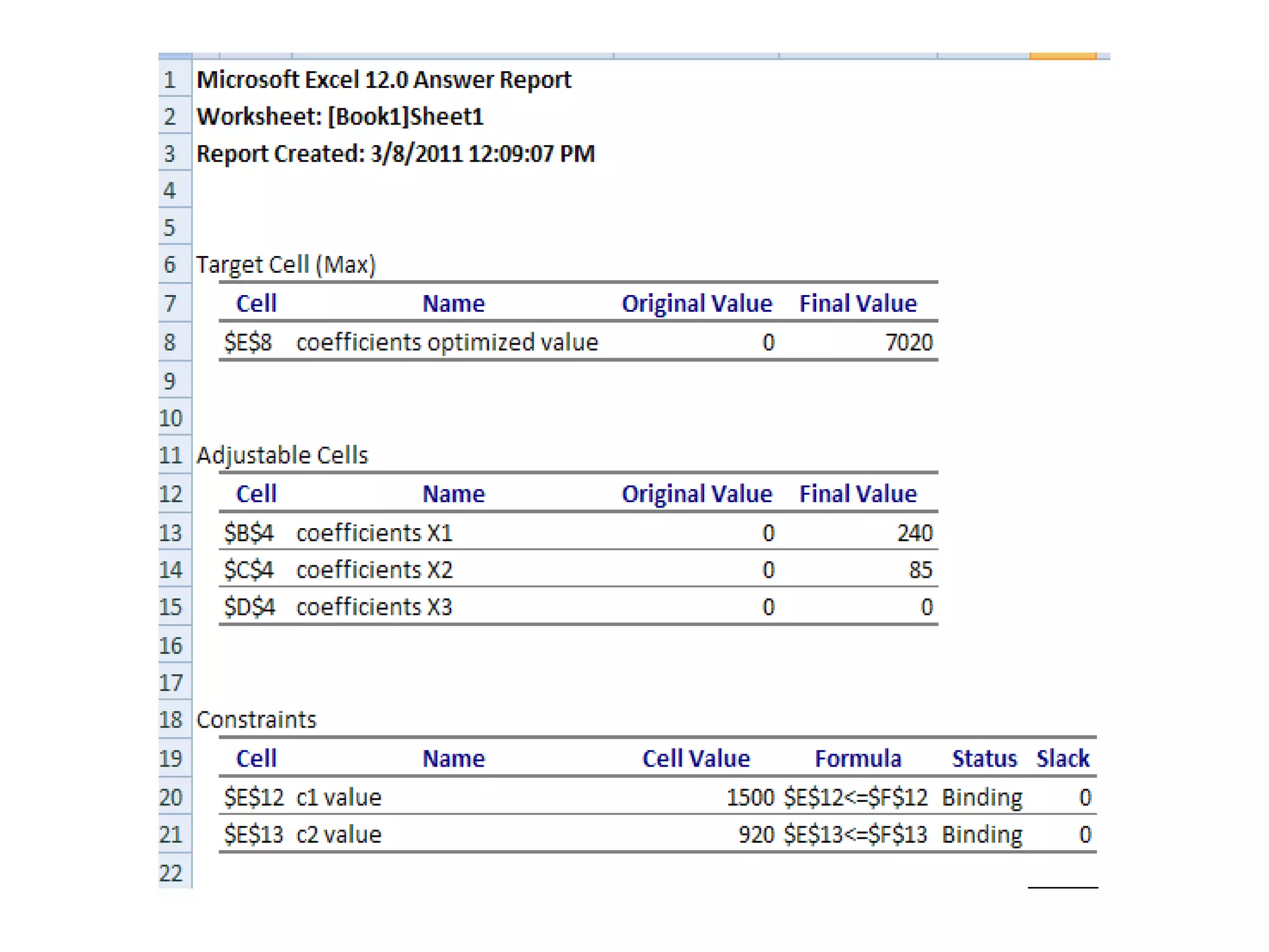 This document provides an introduction to using the Excel Solver tool to solve optimization problems. It explains how to enable the Solver add-in, the four main steps to solving a linear problem using Solver: 1) organizing the problem information, 2) setting up the problem in a spreadsheet, 3) running Solver, and 4) interpreting the results. It also includes an example problem about maximizing profits from manufacturing different products with limited resources, and shows how to set up and solve this problem using Solver.