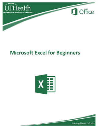 Microsoft Excel for Beginners is a 2-hour workshop that teaches basic Excel skills. Participants will learn how to navigate within a spreadsheet, format cells, insert and delete rows and columns, use the fill handle, build equations with cell references, and use AutoSum. Four exercises are included to practice these skills: resizing columns, freezing panes to lock titles, using the fill handle, and building a sales report with formatting, math functions, and a grand total.