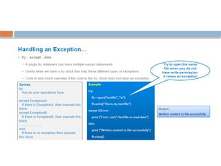 print(āPlease Check the Permission of file ā,e)