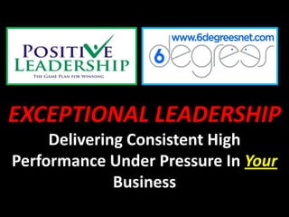 This document discusses lessons that business leaders can learn from Olympic and Paralympic athletes to achieve exceptional and consistent results even under pressure. It argues that exceptional leadership is attainable for anyone and outlines attributes like guts, determination, teamwork, focus, practice, and self-belief that are shared by great athletes and business leaders. The document provides tips for leaders such as setting meaningful goals, focusing on strengths, recruiting the right talent, and sharing best practices in order to "medal" or succeed each day.