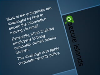 Secure Islands’ IQProtector classify and protect all emails, incoming and outgoing. For more information about email encryption software: http://www.secureislands.com/product/iqprotector-for-exchange/