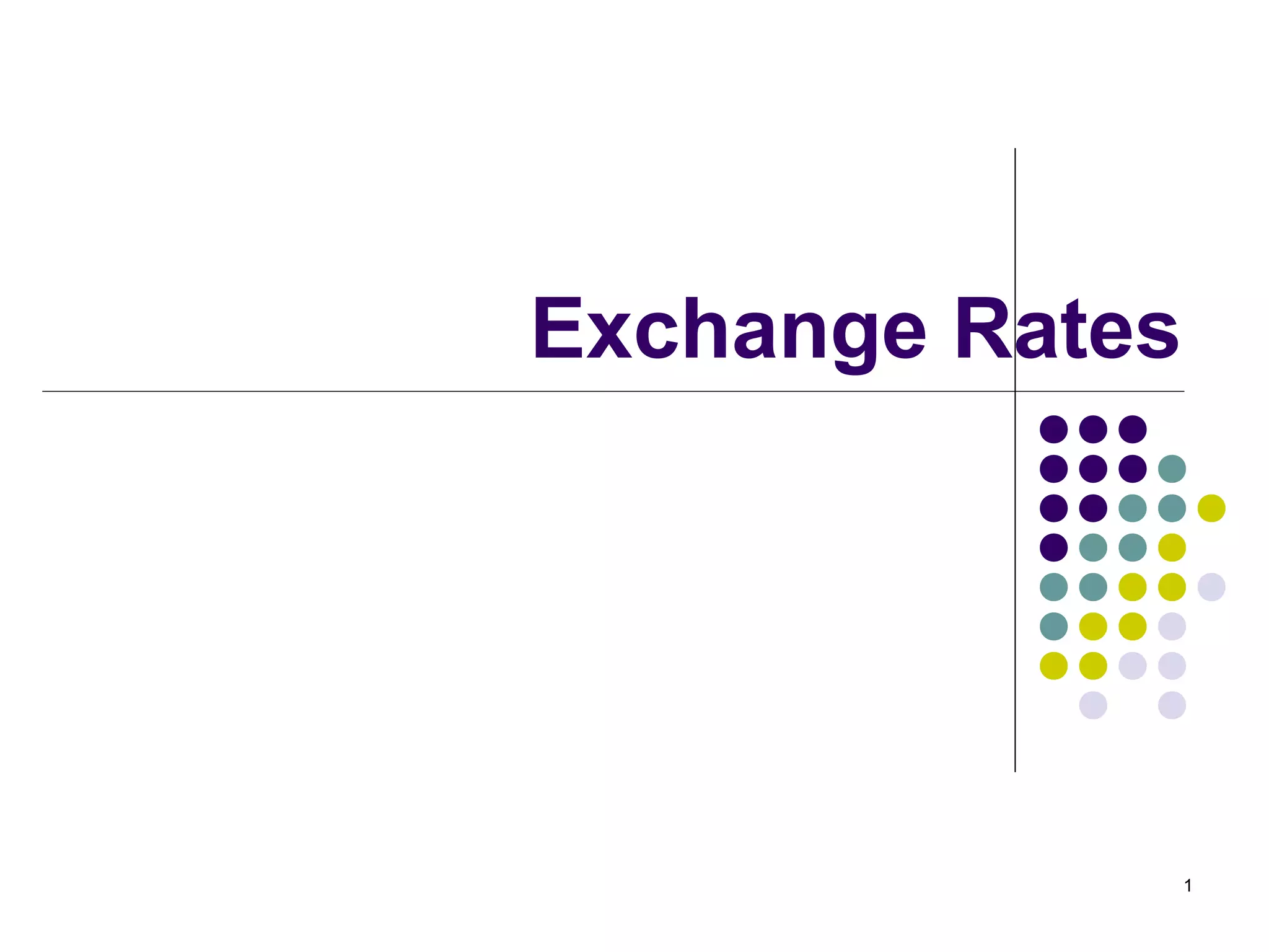 The document discusses exchange rates, defining them as the price of one currency in terms of another, and explains how they are influenced by demand and supply factors in the foreign exchange market. It outlines types of exchange rate systems, including fixed, floating, and managed exchange rates, detailing central bank interventions and factors affecting currency values. Additionally, the document touches on concepts like appreciation and depreciation of currencies, as well as the role of speculation and interest rates in determining exchange rates.