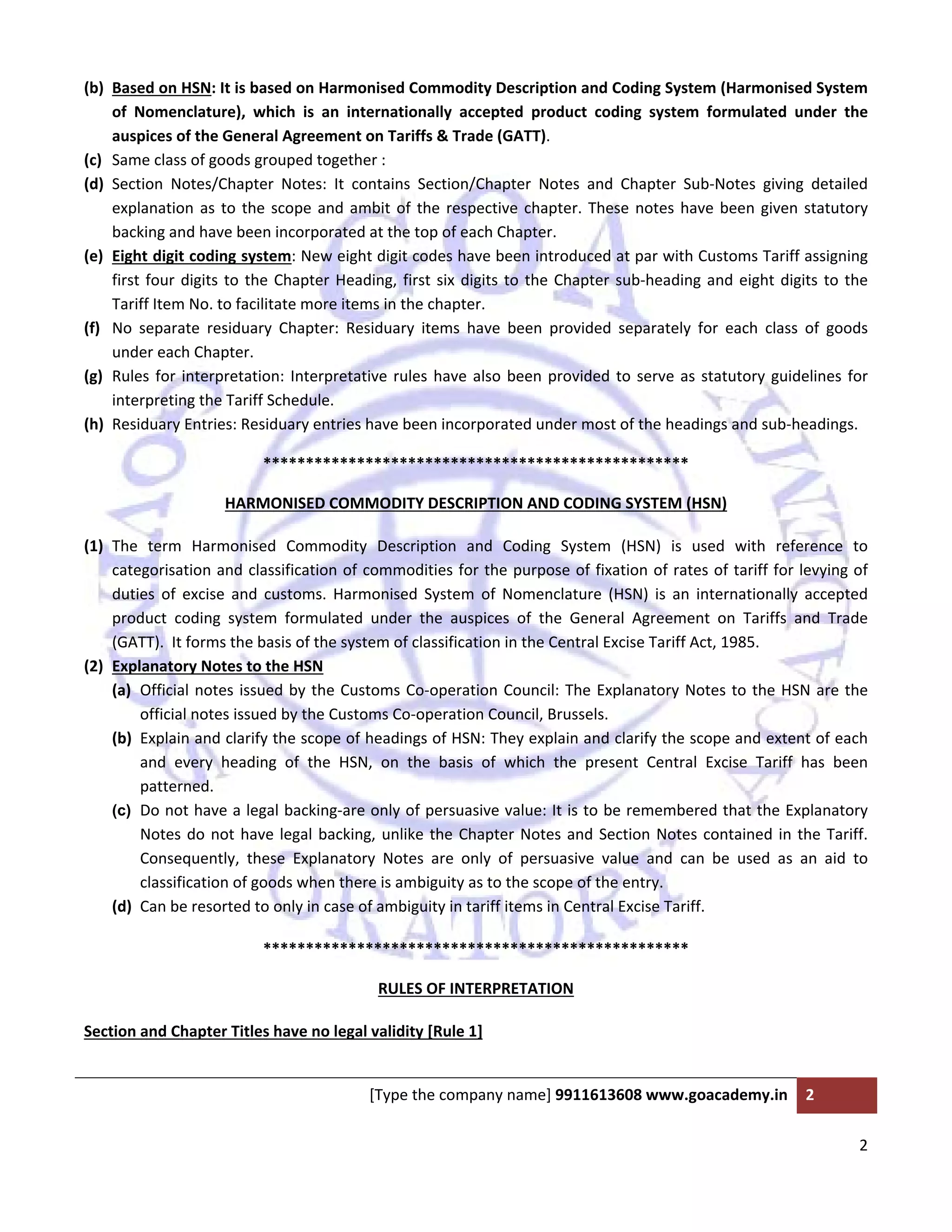 This document discusses classification of goods under the Central Excise Tariff. It defines classification as determining the correct tariff heading or sub-heading for goods to assess the applicable duty rate. Proper classification is needed to determine duty rates, exemptions, and deemed manufacture. The rules of interpretation and trade parlance theory are also summarized to aid in classification. Classification is done based on the goods' condition at the time of removal.