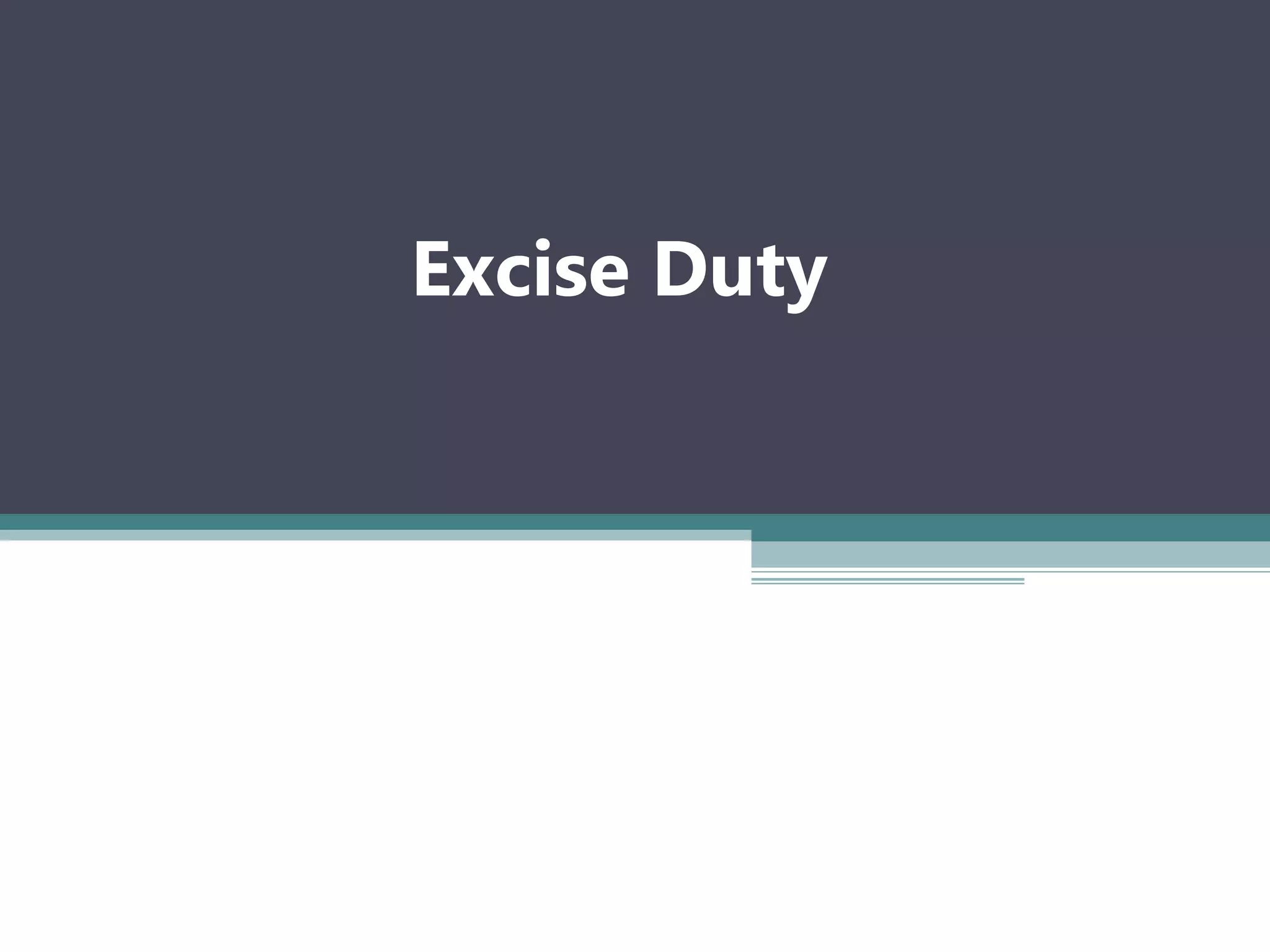 Excise duty is a tax imposed on goods produced domestically in Bangladesh. It is levied on the manufacture, sale, or purchase of commodities and services within Bangladesh but not on imported goods. Excise duty rates can be specific amounts based on quantity or ad valorem based on value. The duty is imposed to discourage consumption of undesirable goods or control consumption of scarce commodities. It is collected by the Customs, Excise and VAT wing of the national board of revenue on goods and services listed in the Excise and Salt Act of 1944 such as bidis, cloth, and banking services.