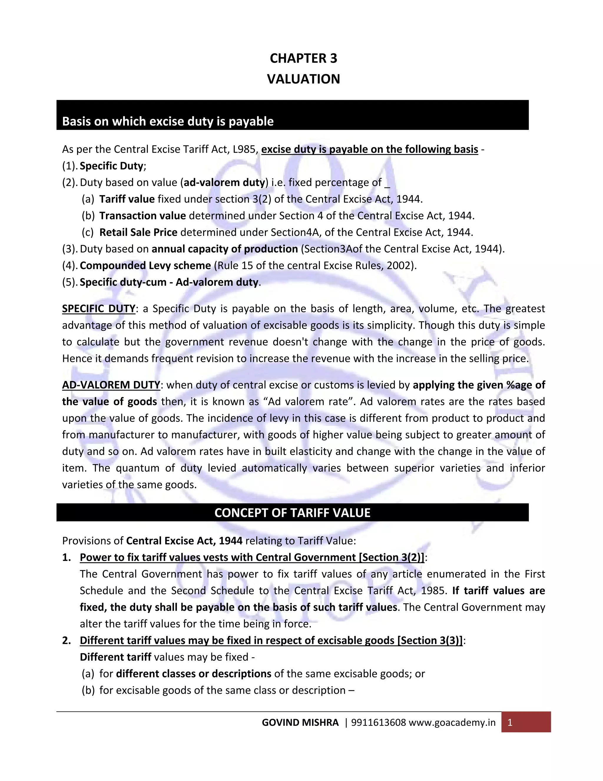 3) Duty based on annual production capacity - Levied on notified goods like tobacco products. Duty is fixed per machine based on retail sale price.