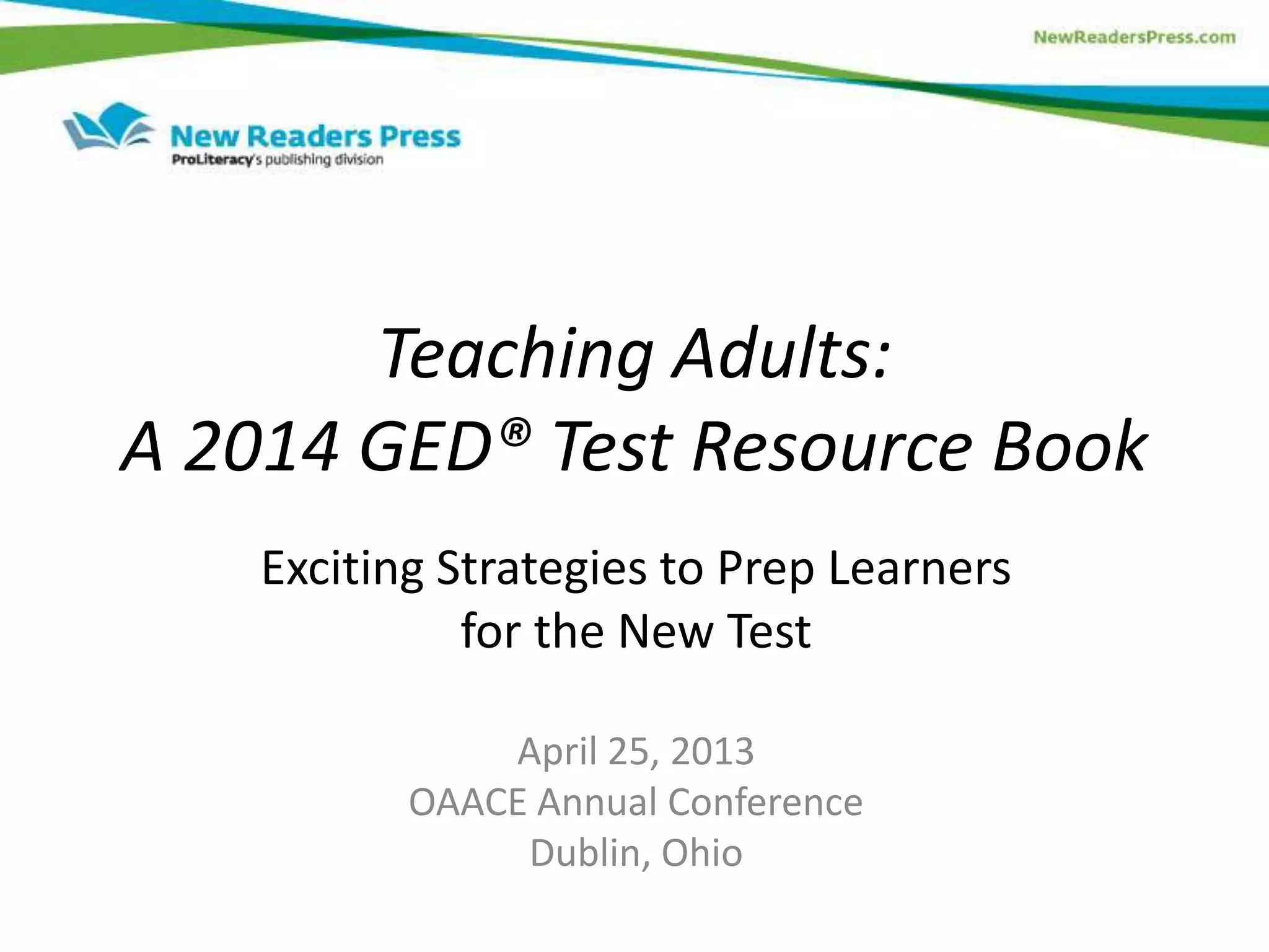 The document summarizes a presentation about preparing adult learners for the changes to the 2014 GED test. The presentation discusses the key changes to expect in the new test, including alignment with Common Core State Standards, an increased focus on depth of knowledge, becoming fully computer-based, adjusting pricing, and integrating content across subject areas. It also explores implications for instruction and curricula, such as adopting more interdisciplinary approaches. An example lesson on the Second Amendment is provided to demonstrate how to facilitate engaging lessons that incorporate reading, data analysis, and writing skills across subject areas.