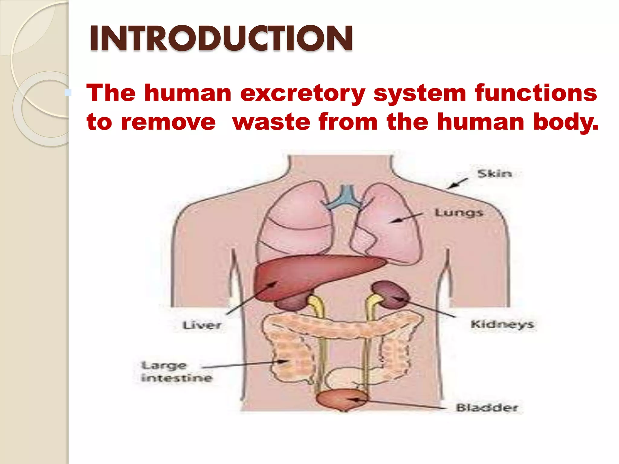 The human excretory system is responsible for removing waste, consisting of organs such as the liver, lungs, large intestine, skin, and the urinary system including kidneys. The kidneys filter blood, form urine, and maintain water and electrolyte balance, while the ureters, bladder, and urethra facilitate urine transport and storage. Key terms related to the excretory system include renal failure, which signifies inadequate kidney function in filtering waste.