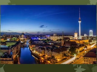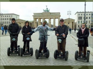 The document provides information on sightseeing tours and excursions being offered in Berlin and Frankfurt, Germany. In Berlin, tours include a hop-on hop-off bus tour stopping at 20 locations, a 5-hour Segway tour limited to 8 people, and a half-day trip to Potsdam visiting its palaces. Frankfurt tours include a similar hop-on hop-off bus tour with 14 stops, a Rhine Valley river cruise, and a 1-hour Frankfurt city sightseeing cruise. A special offer is also made for tickets to a Rammstein concert in Germany on May 24-25.