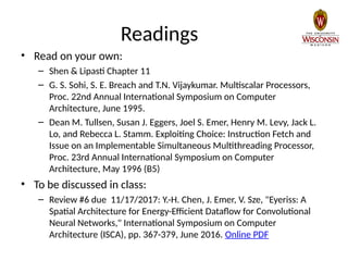 The document covers the topic of executing multiple threads in computer architecture, emphasizing thread-level parallelism, synchronization, and cache coherence mechanisms. It discusses various methods and architectures for multitasking, including fine-grained and coarse-grained multithreading, as well as chip multiprocessors and chip multithreading. Key issues such as memory consistency, synchronization primitives, and the challenges of shared resources in multiprocessor systems are also addressed.