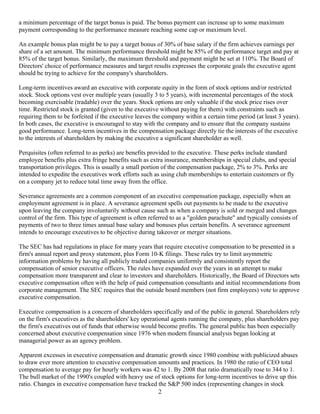 This document discusses executive compensation at financial institutions. It provides context on the structure of executive compensation packages generally and how they have changed over time. While compensation structures are similar across industries, the document argues executive compensation at financial institutions should better account for risks to stakeholders beyond shareholders, as excessive risk-taking contributed to the global financial crisis. The crisis has spotlighted compensation at financial firms and led to reductions, especially for CEOs, though broader reform is still needed.