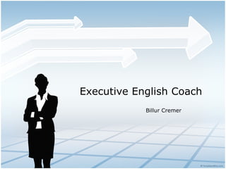 The document discusses executive English coaching services provided by Billur Cremer. It outlines the benefits of learning English such as improving one's career prospects. Some tips for interviews are provided, including focusing on body language and preparing for behavioral questions by recalling relevant accomplishments. Guidelines are presented for writing CVs and cover letters, including formatting, objectives, work history, and references. Several English proficiency certifications are also listed.