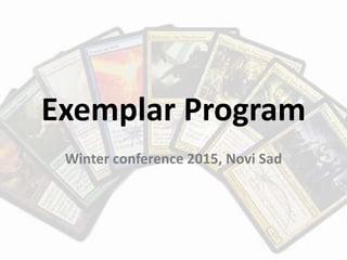 The document discusses the Exemplar program at the Winter Conference 2015, highlighting its history, goals, and the distinction between reward and recognition. It addresses challenges faced by the program, explores impacts on social media, and emphasizes feedback for continuous improvement. Additionally, it mentions upcoming FAQs and opportunities for discussion.