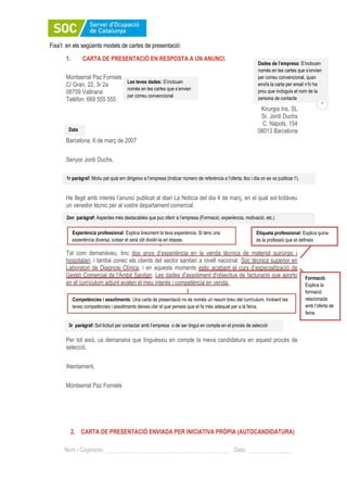 Fixa’t en els següents models de cartes de presentació: