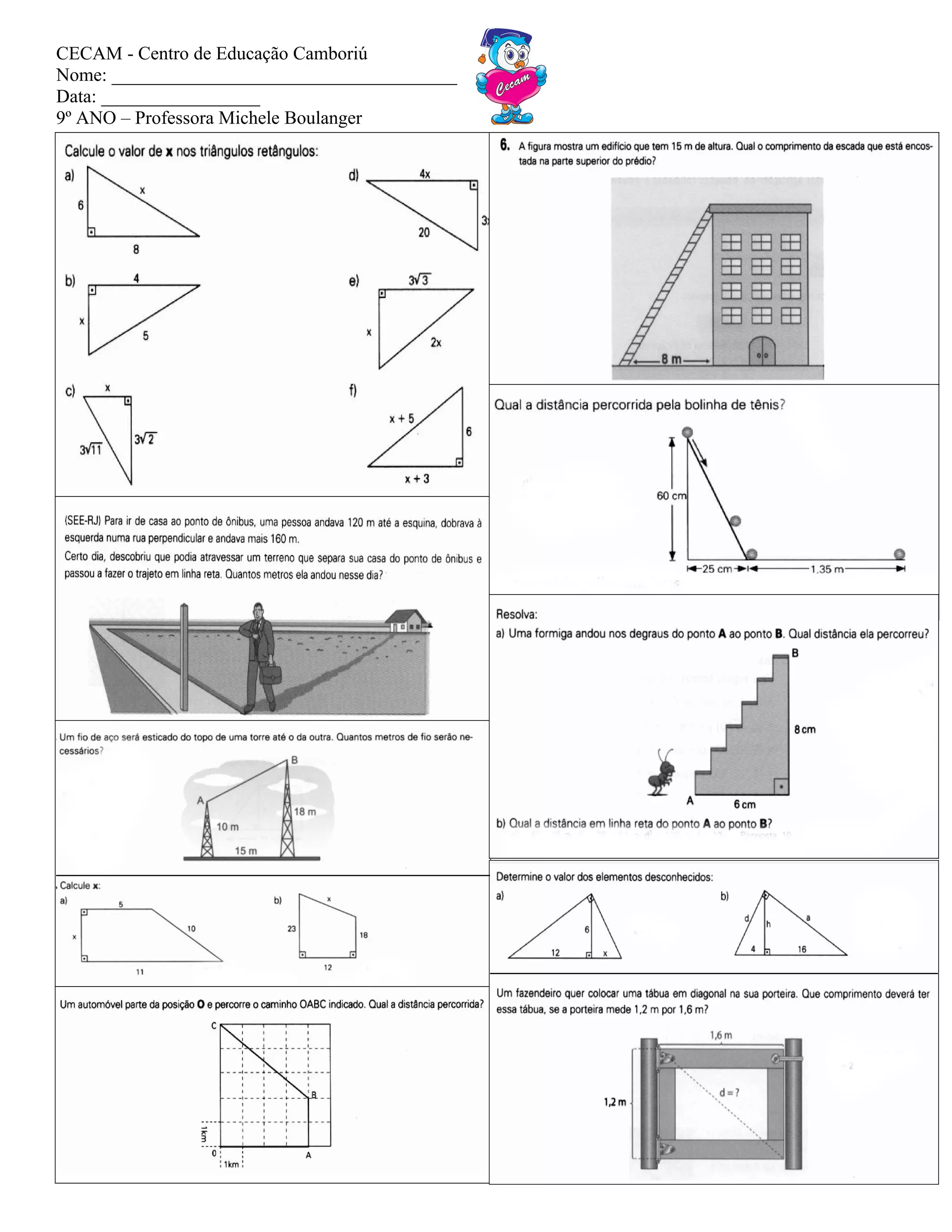 O documento é um formulário de matrícula para o 9o ano no Centro de Educação Camboriú, com espaços para preencher nome e data.