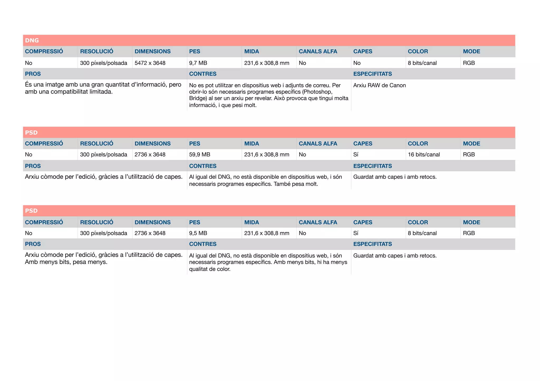 COMPRESSIÓ RESOLUCIÓ DIMENSIONSPES MIDA CANALS ALFA CAPES COLOR MODE