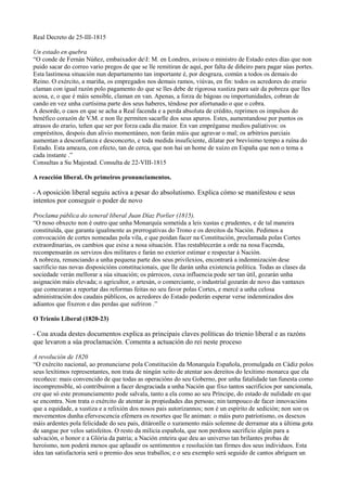 opúñanse á mesma e desexaban retornar ao absolutismo. A partir destes textos comenta como se