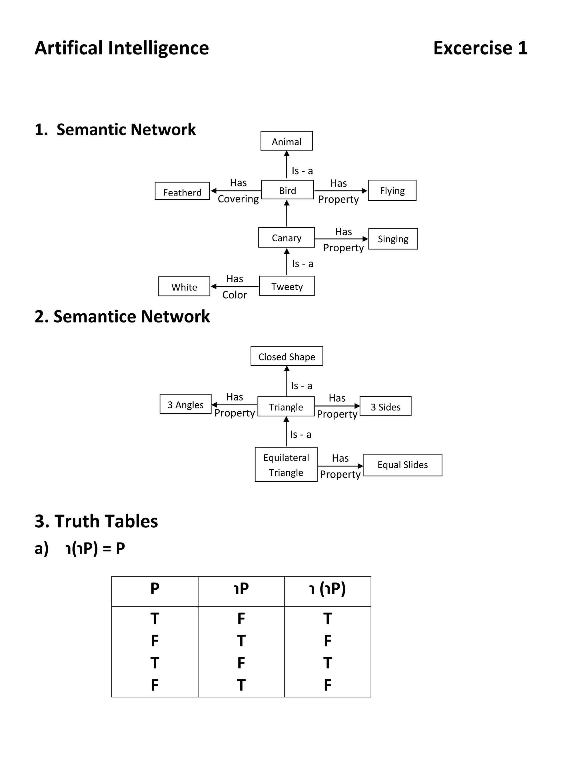 1. The document contains examples of semantic networks and truth tables exploring properties of logic statements using variables P, Q, and R.
