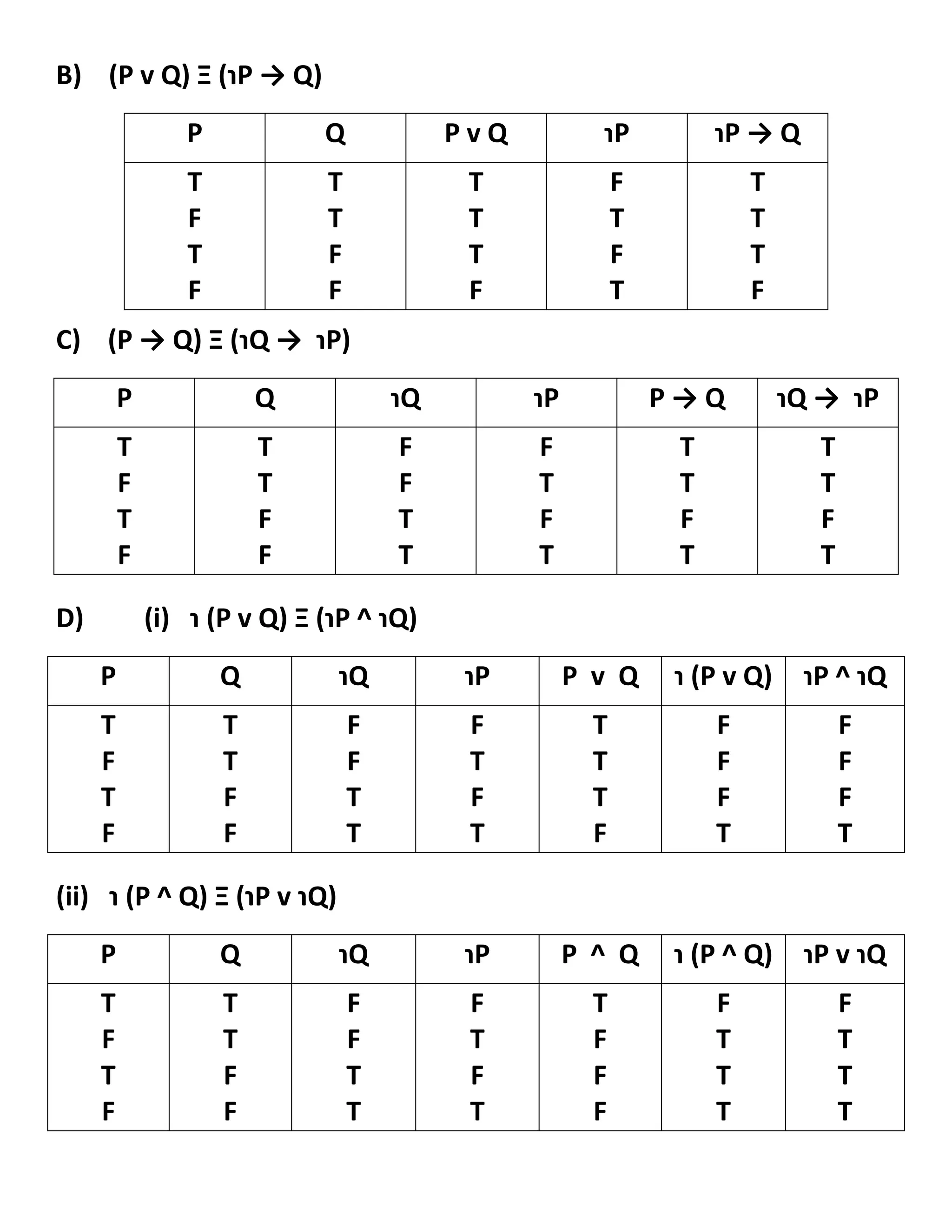 3. Logical equivalences and implications are examined, such as conjunction, disjunction, negation, and conditional statements.