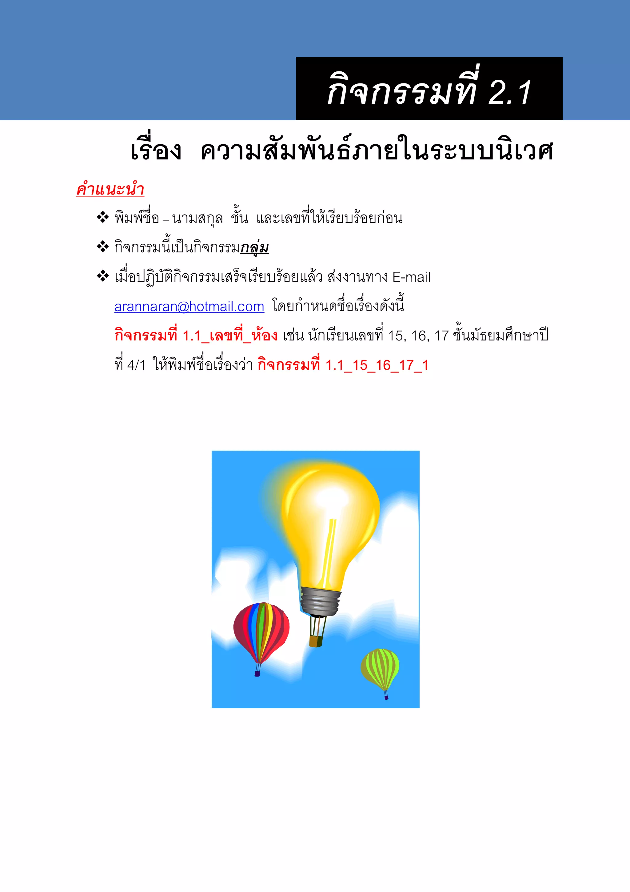 2.1 1. ก ?@กA &7 ? ' &? E F ก &!FG$ http://www.youtube.com/watch?v=Ie23UWQVvXM & & ก [! E ! 'EE& ! 7% 7'$ F! !E& ก F7 กก &7 ? ' ก &7 ? ก ก7! 7% ' 7 ' ก &ก & E& > ' ' &$ ? & ก E& > 'ก ' &$ 'ก ] 7 '' ก & $'E8 ] E E8 $ ก F ก& 10 E ! 'EE& & o E& > ' ' &$ ? & ก o E& > 'ก ' &$ 'ก ] 7 '' o ก & & 8 _ ' & 8 F` Microsoft Office PowerPoint _ ' 'E F $ 'e www.facebook.com , www.slideshare.com , www.wordpress.com !" $