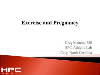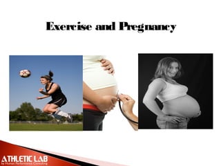 The document discusses the benefits and considerations of exercise during pregnancy, highlighting physical and emotional advantages such as improved mood and reduced weight gain. It emphasizes the importance of consulting a physician before starting an exercise program, with guidelines for moderate exercise for at least 30 minutes daily after gaining clearance. Additionally, it details safe and unsafe activities, necessary modifications, and signs to cease exercising and consult a doctor.
