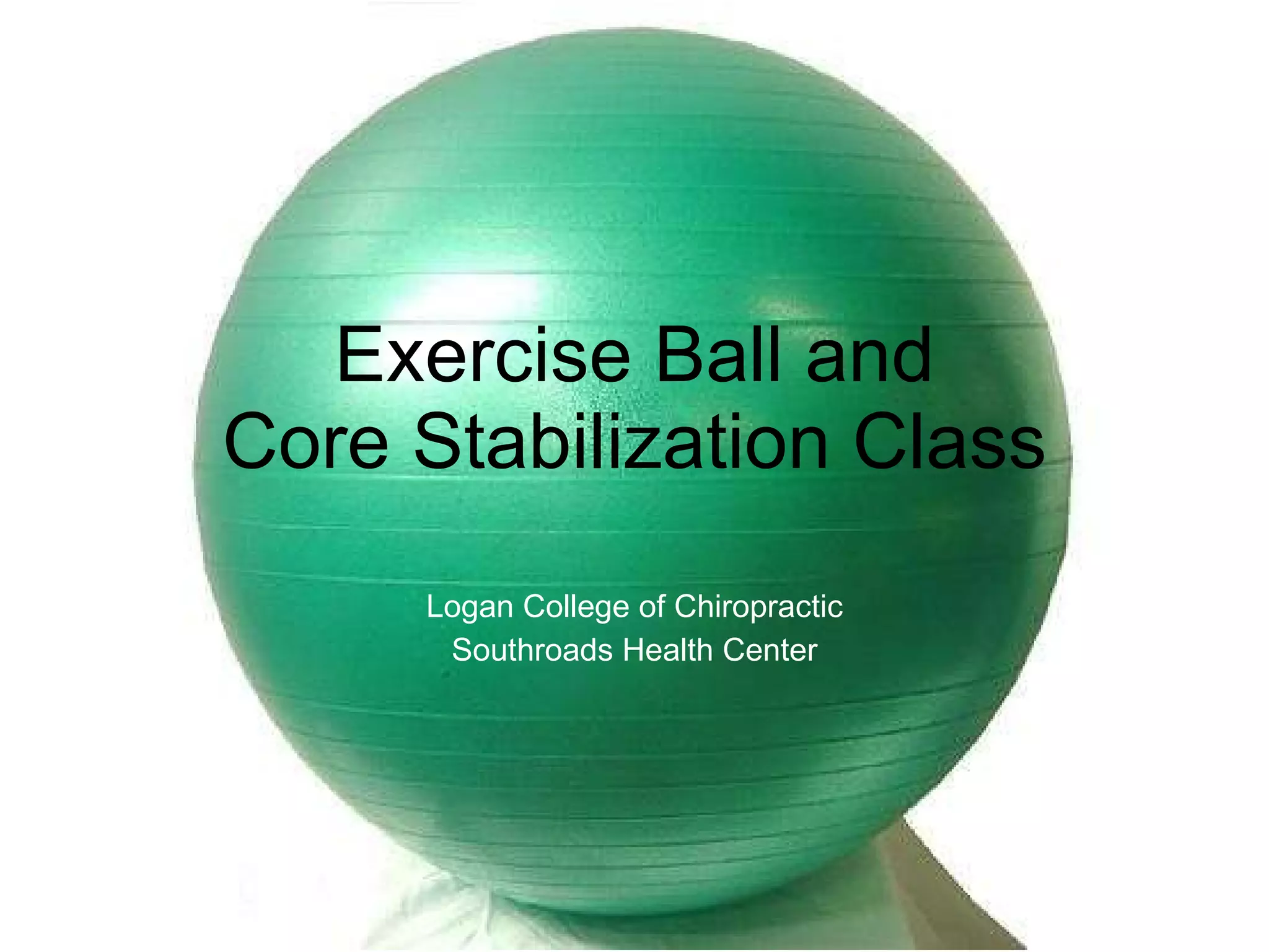 The document outlines an exercise ball and core stabilization class offered by Logan College of Chiropractic, focusing on spinal stability through various layers of muscles. It provides an overview of class rules, principles of stability, and a series of exercises designed to improve core strength and balance. Additionally, it encourages participants to ask questions and engage with exercises safely.