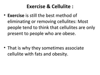 Exercise is the most effective method for removing cellulite, which is often mistakenly associated only with obesity despite affecting individuals of various body types. Although the precise causes of cellulite remain unclear, women are more prone to it due to the structure of their connective tissues. To reduce cellulite, it is essential to engage in regular exercise while managing food intake to maintain strong connective tissues and prevent fat accumulation.