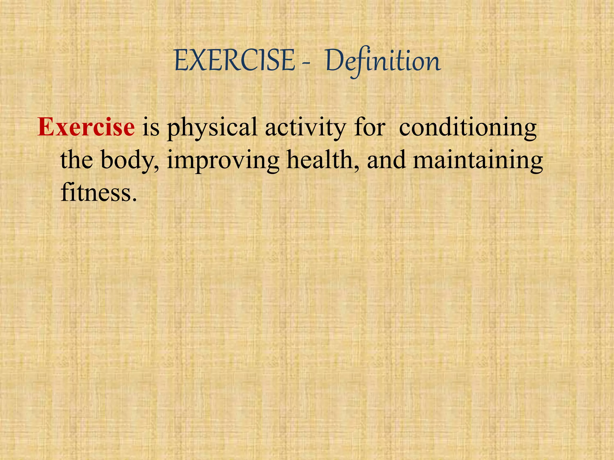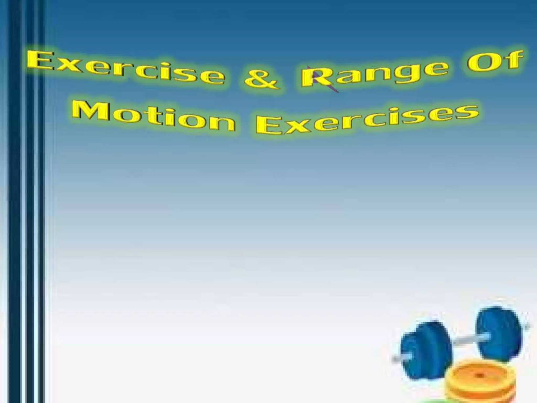 The document defines exercise and describes its purposes and benefits. Exercise includes physical activity that conditions the body and improves health. It decreases disease risks, improves functional strength and activity tolerance. Specific benefits are also outlined, like improved cardiovascular, respiratory and musculoskeletal function. Different types of exercises are classified, like isotonic, isometric, aerobic and stretching exercises. Guidelines for range of motion exercises are provided along with examples of different joint movements.