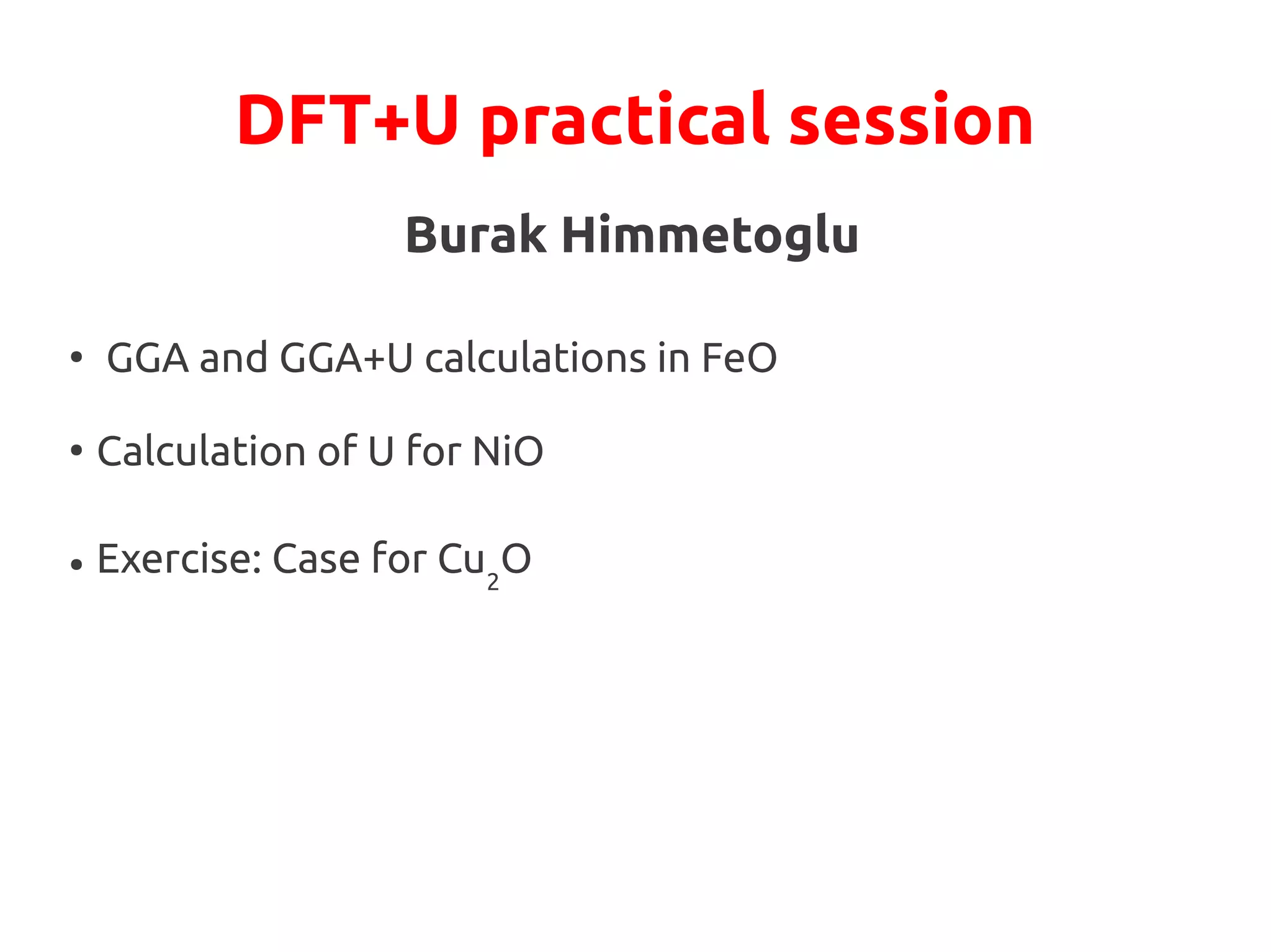 The document describes a practical session on DFT+U calculations. It discusses calculations on FeO using GGA and GGA+U to find insulating and metallic states. It also covers calculating the Hubbard U parameter for NiO using linear response and extrapolating to larger supercells. Finally, it proposes an exercise to perform GGA, GGA+U calculations on Cu2O, calculate the U parameter, and investigate changes to the density of states.