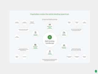 The document outlines a program on debt finance, featuring presentations from various speakers about the debt market, funding options, and the role of accountants in securing finance for SMEs. It emphasizes the importance of understanding financial requirements and options, the implications of personal guarantees, and market trends amidst uncertainties like Brexit. Additionally, it promotes a funding platform connecting advisors with numerous lenders to facilitate access to diverse financing sources for businesses.