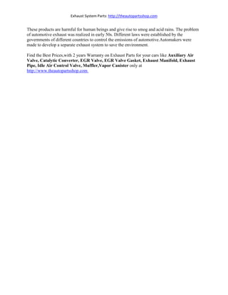 The exhaust system is crucial for removing harmful emissions produced by the engine, contributing to environmental protection. It involves a scavenging process varying between two-stroke and four-stroke engines to manage exhaust gases. Governments have implemented regulations to address automotive emissions, prompting manufacturers to create effective exhaust systems.