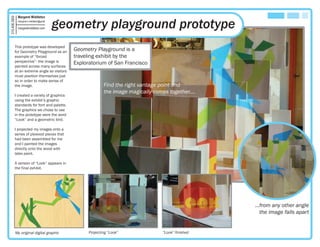Margaret Middleton created illustrations, diagrams and maps for the Bill Nye's Climate Lab exhibit at the Chabot Space and Science Center in Oakland, California. Most illustrations were digital. She also created a prototype for the Geometry Playground exhibit that used forced perspective techniques. Additionally, she designed costumes for the Underland outdoor exhibit at the Providence Children's Museum in Rhode Island.