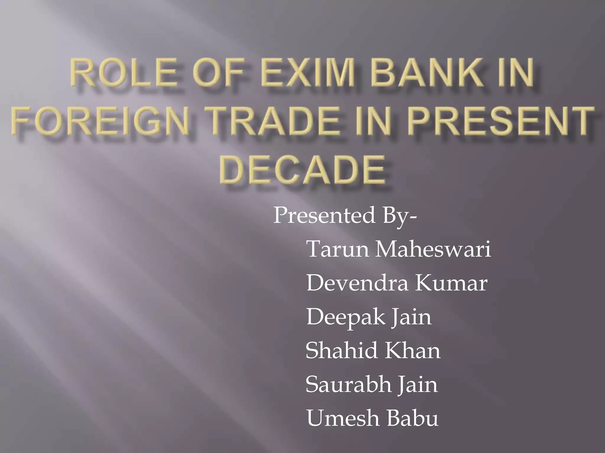 The Export-Import Bank of India was established in 1981 by the Indian parliament to provide financial assistance to importers and exporters, serving as the country's apex financial institution for foreign trade. It offers various services including financing for exports, imports, overseas investments, and sectors like agriculture and small and medium enterprises. The bank is wholly government-owned and works to promote and finance foreign trade through loans, credit guarantees, and other financial services. It also has institutional linkages with various international organizations to facilitate trade and investment activities. India's foreign exchange reserves managed by the bank grew significantly in the late 2000s before declining during the global financial crisis, but had risen again to over $298 billion by the end of 2010.