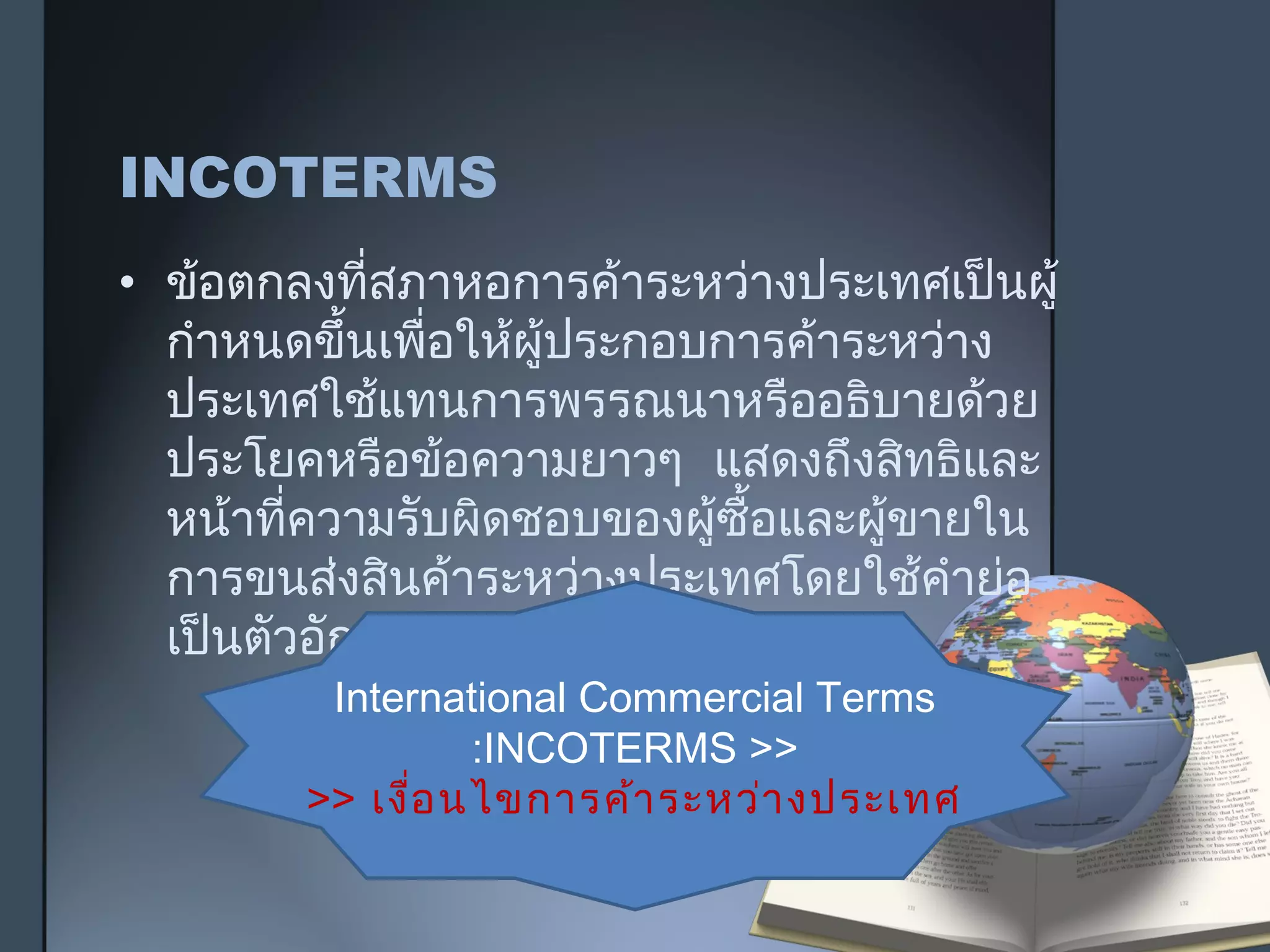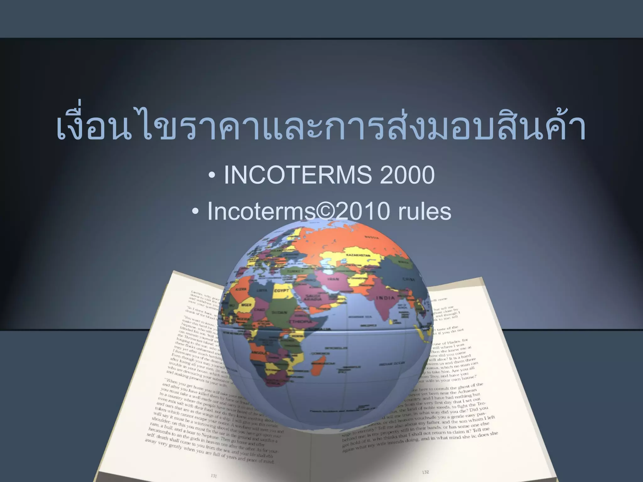 • ผู้ขาย : ภาระในค่าสินที่ได้รวมค่าขนส่งซึ่ง