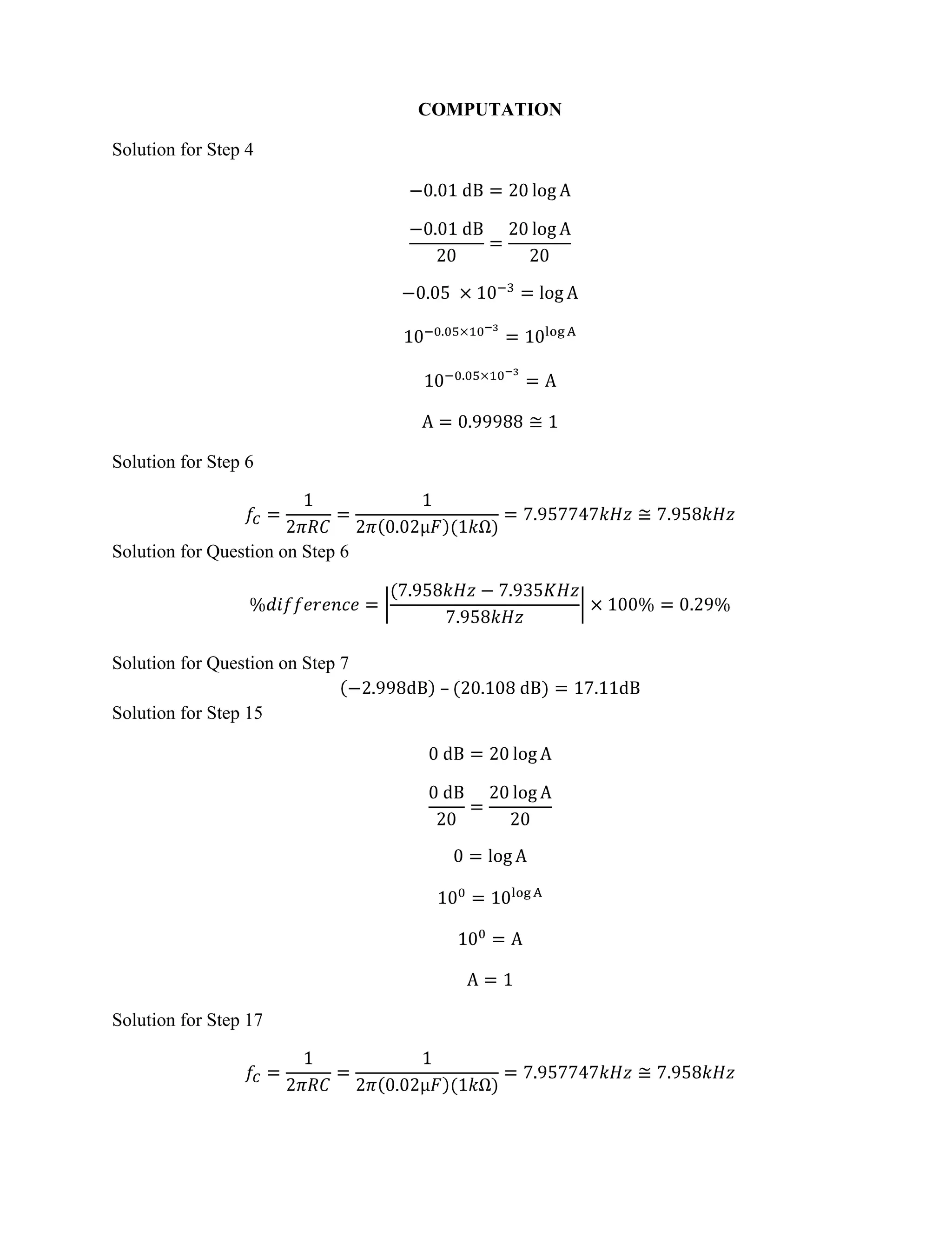 - Cutoff frequency is where output drops 3dB and is calculated from component values.