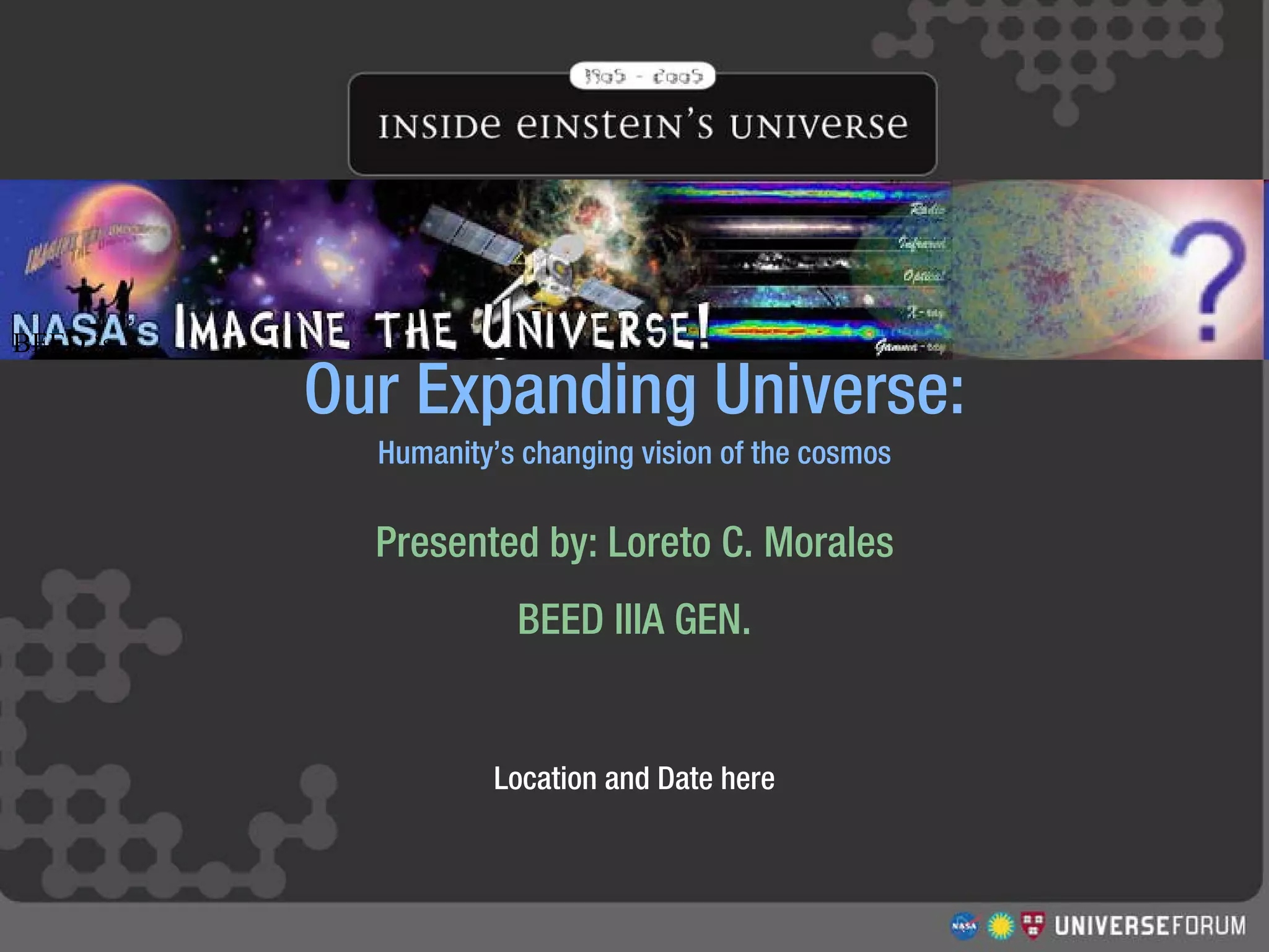 The document discusses the evolution of cosmological models throughout history from ancient times to modern day. It describes three major revolutions in cosmology: 1) the Ptolemaic Earth-centered model from the 2nd century, 2) the Copernican Sun-centered model in the 16th century, and 3) the modern Big Bang model of the 20th century. The Big Bang model is supported by evidence like the cosmic microwave background radiation and the composition of the universe being mostly hydrogen and helium. New discoveries of dark matter and dark energy have led to refinements of the Big Bang model.