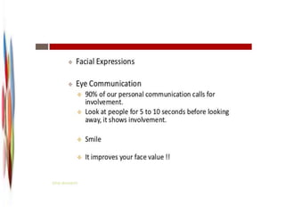 This presentation discusses expected behavioral and communication skills in the pharmaceutical industry. It defines expected behavior as what would be socially expected in a given situation, and communication skills as the ability to convey information effectively. Good communication skills help facilitate information sharing within a company for commercial benefit. The presentation notes that strong behavioral and communication skills are essential for quality control, production, engineering, administration, and interactions with workers and others. It also discusses handling sensitive situations regarding personal hygiene, professional image, medical issues, substance use, and harassment.