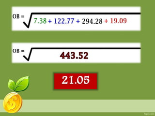 This document defines key concepts related to expected value, expected return, and standard deviation. It explains that expected value is the weighted average of all possible values of a random variable. Expected return is calculated by multiplying the probability and return of each possible scenario and summing the results. The document provides an example of calculating expected return using four scenarios. It also defines standard deviation as a measure of how spread out data is from the mean.
