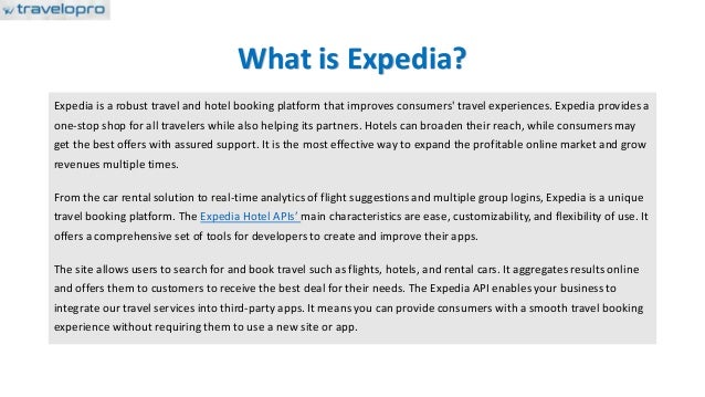 and offers them to customers to receive the best deal for their needs. The Expedia API enables your business to
