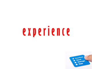 For decades, companies dictated what customers wanted, but now customers have more control over their experiences. There are many examples of company failures to understand changing customer wants. Individual customers now have more power to shape their experiences and companies must focus on understanding each unique customer to avoid failures. Customers crave experiences and companies must focus on creating engaging experiences at every touchpoint to develop devoted customers.