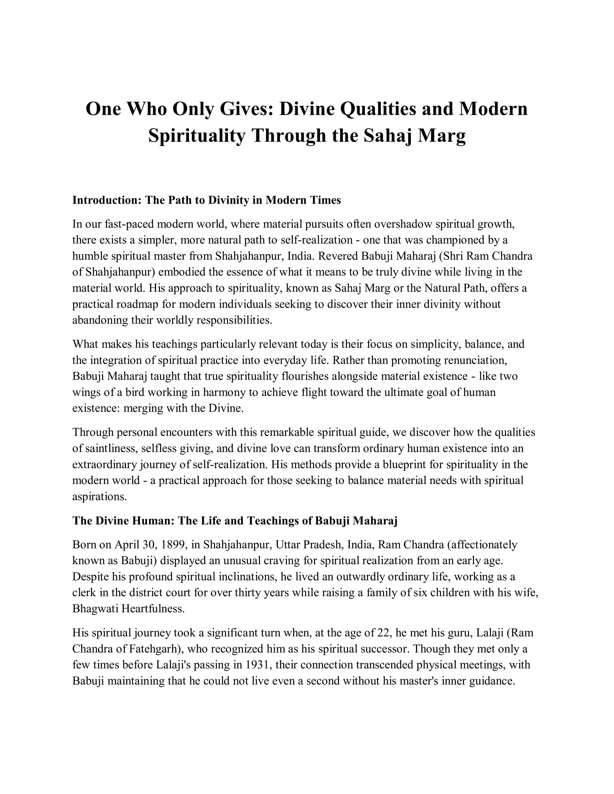 challenges. Babuji Maharaj's teachings offer a revolutionary framework for spirituality in the