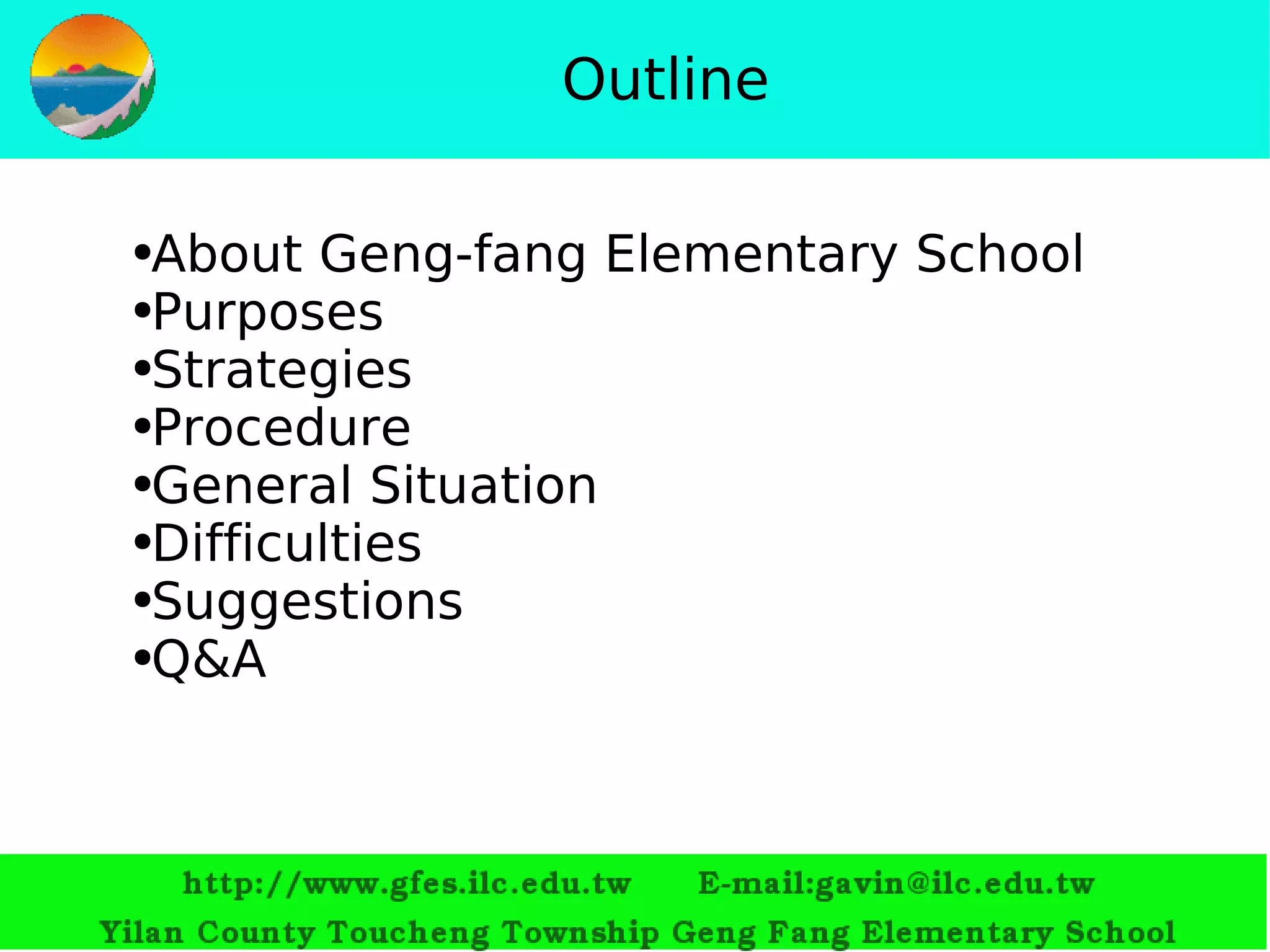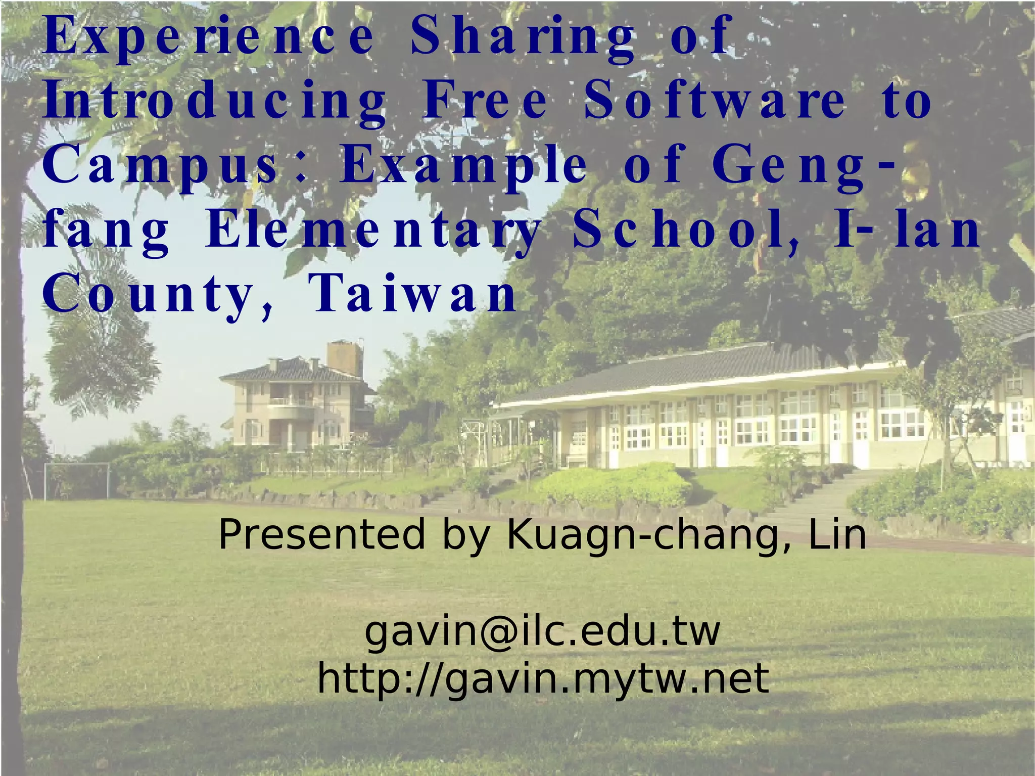The document discusses the implementation of free software at Geng-Fang Elementary School in Taiwan, highlighting the school's objectives to save costs, promote knowledge sharing, and foster a multi-information learning environment. The strategies employed include full involvement of staff, addressing user concerns, and gradual integration of free software alongside Windows systems. Challenges faced include outdated hardware, teachers' lack of skills with free software, and slow translation of software into Chinese, with suggestions for improvement involving principal persuasion, creating a supportive learning environment, and building a technical consulting team.