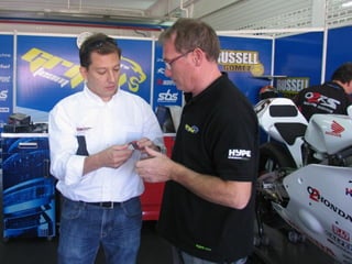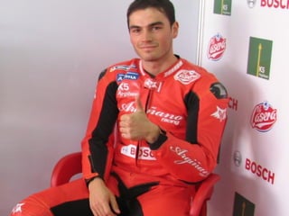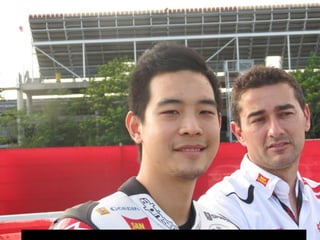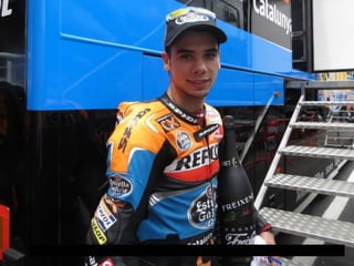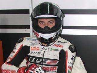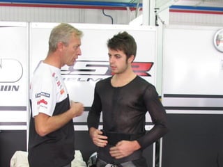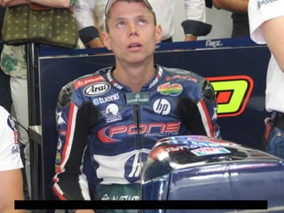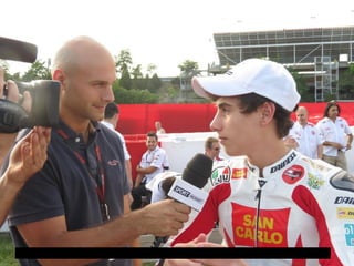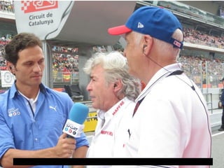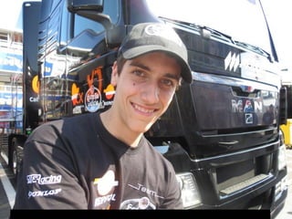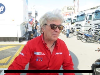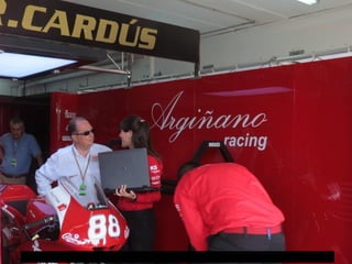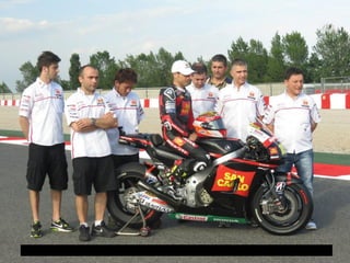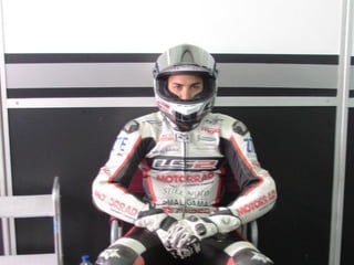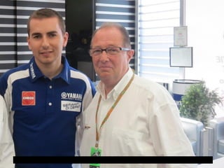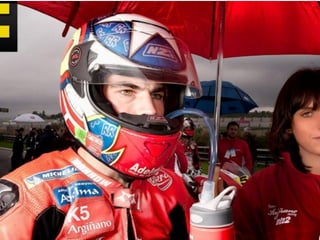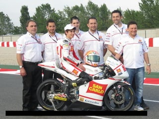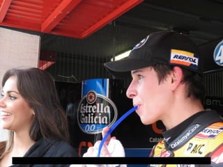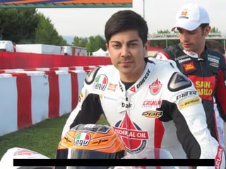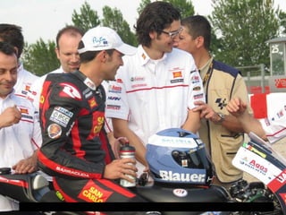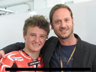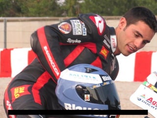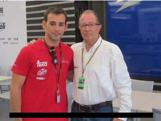 The document features photos of various motorcycle racers including Valentino Rossi, a Moto GP World Champion, Tomoyoshi Koyama and his mechanic from Moto2 World Championship, and Santi Hernandez, a Moto 2 rider in the CEV championship. It also includes a photo of the author's granddaughters at the Circuit de Catalunya racetrack along with a photo of Alex Criville, a 500cc Moto GP World Champion.