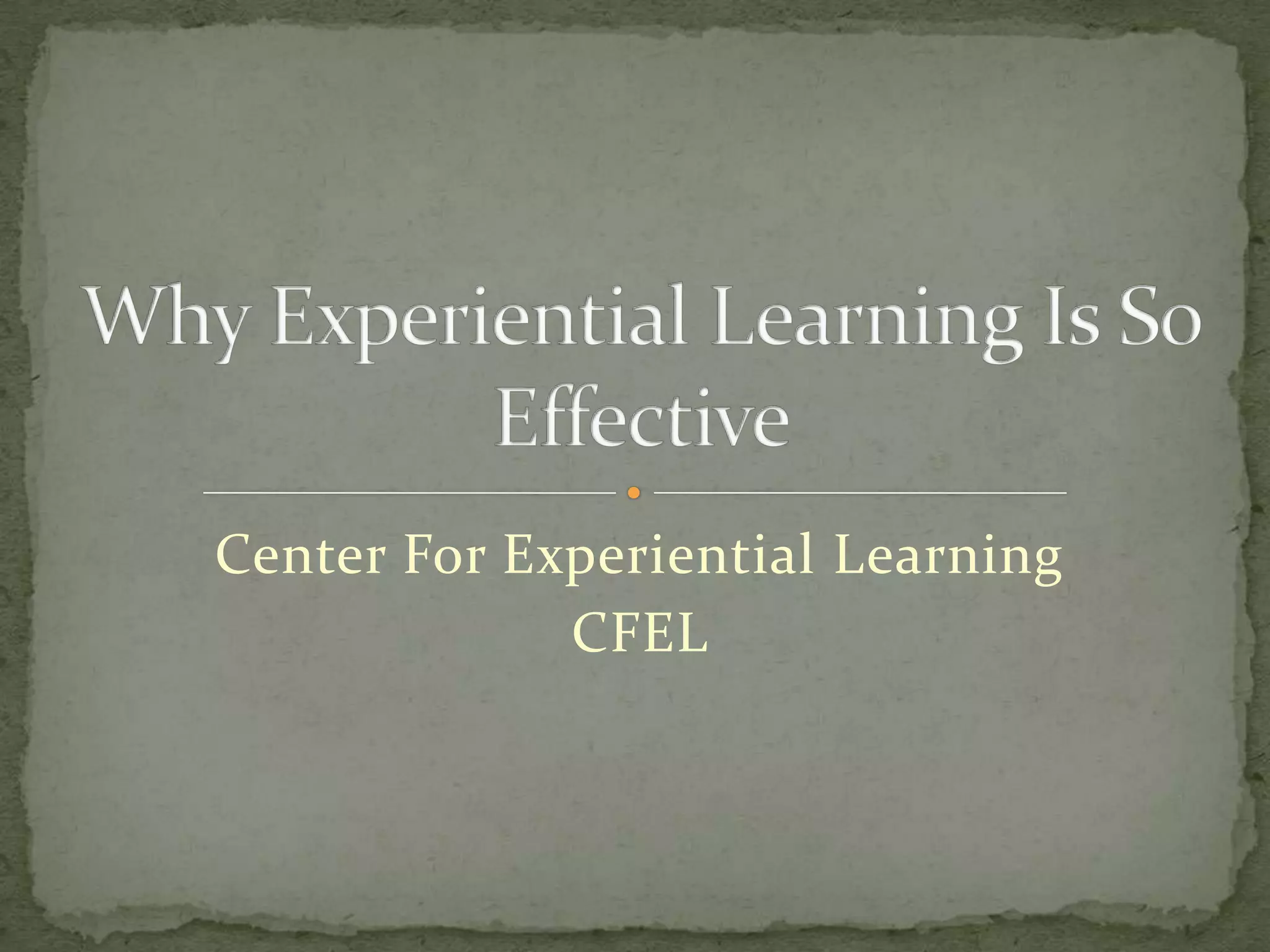 The Center for Experiential Learning (CFEL) provides novel experiences where participants must work together with equal knowledge on unfamiliar challenges. This develops relationships and communication skills faster than normal conditions. The unfamiliar tasks place people in an unbalanced state where they cannot rely on status or experience, focusing instead on problem solving and leadership skills. The experience allows participants to demonstrate typical behaviors and receive feedback in a safe environment to improve personal and professional skills through experiential learning.